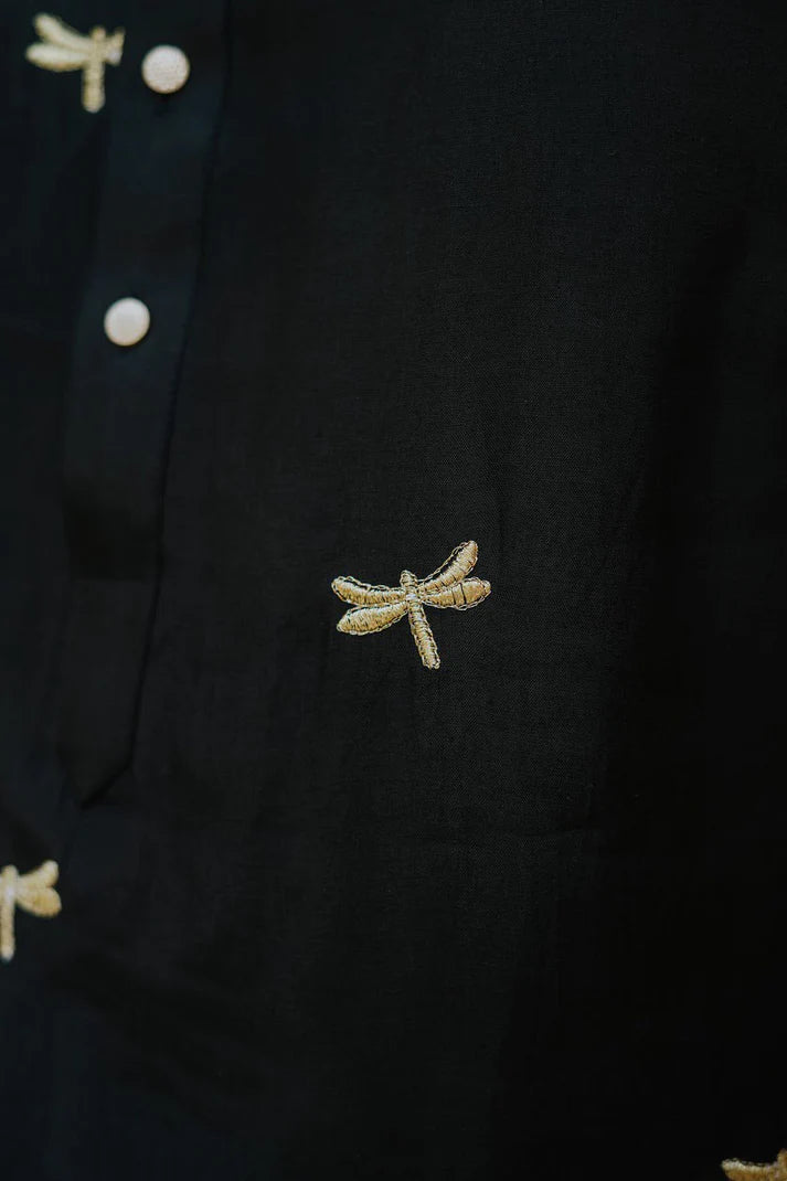 Black Dragon Fly Embroidered Work Men's Kurta with Pajama
